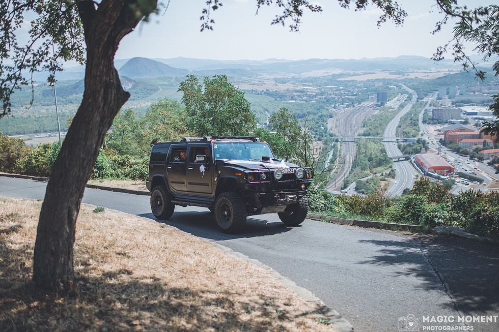 MARTIN PRO SVOU ŽENU PŘIPRAVIL „PŘEKVAPENÍ“ VE FORMĚ VOZU HUMMER, KTERÝ NÁS DOPROVÁZEL PO CELÝ DEN. PRAVDA, NASTUPOVÁNÍ VE SVATEBNÍCH ŠATECH NEBYLO ZROVNA EASY, ALE TO AUTO BYLO FAKT ORIGINÁLNÍ A MY JSME SI PROJÍŽĎKU NA RESSLU UŽILI (OBZVLÁŠŤ HONZA). POUŽILI JSME HO POTÉ I PŘI FOCENÍ, Z ČEHOŽ BYLA NEVĚSTA VYLOŽENĚ NADŠENÁ :-D