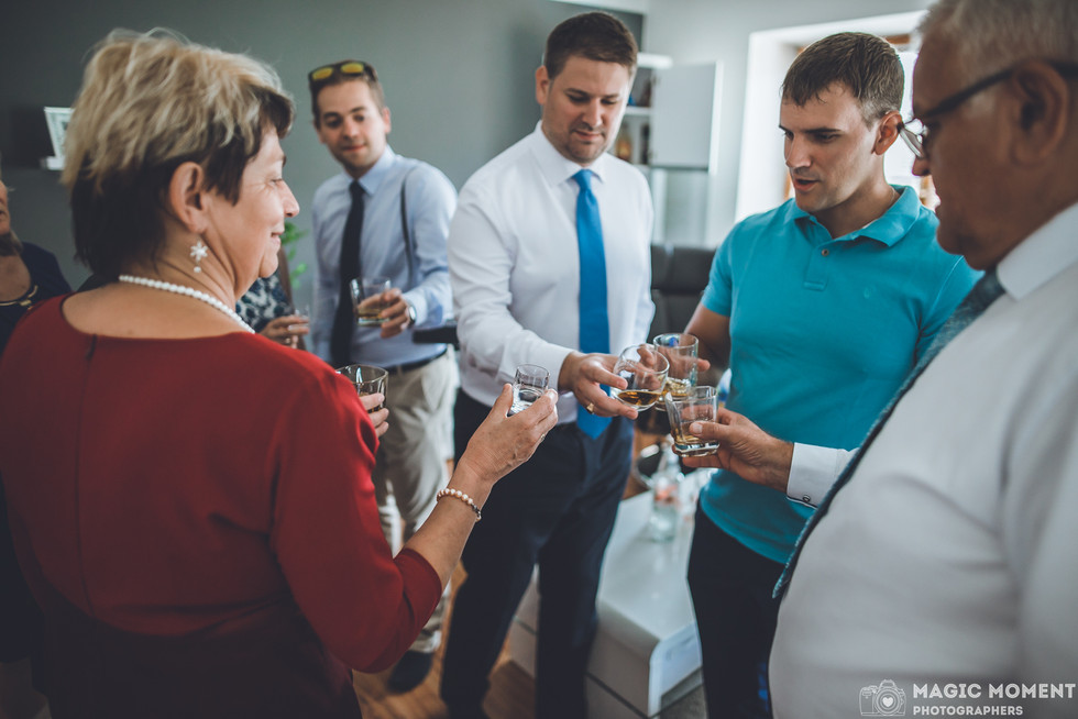S VERČOU A MARTINEM JSME SE TROCHU SBLÍŽILI JEŠTĚ PŘED SVATBOU, KDYŽ JSME SPOLEČNĚ VYRAZILI NAFOTIT RODINNÉ FOTKY U PŘÍLEŽITOSTI PRVNÍCH NAROZENIN JEJICH MALÉ CLAUDINKY. HNED POTOM JSEM VĚDĚLA, ŽE FOCENÍ NA JEJICH SVATBĚ BUDE NESKUTEČNÁ POHODA, COŽ JAK SE UKÁZALO, BYLA PRAVDA. UŽ DOMA U NEVĚSTY, KDE JSME FOTILI PŘÍPRAVY, VLÁDLA VESELÁ ATMOSFÉRA. VŠICHNI PŘÍCHOZÍ VYFASOVALI LEGENDÁRNÍ PÁRKY, DLE RECEPTU TATÍNKA NEVĚSTY A BYLA SRANDA.