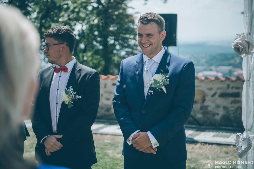 OBŘAD BYL NA HNĚVÍNĚ A POČASÍ NÁS TEDA NEŠETŘILO. PŘEDPOVĚĎ BYLA NA 33 VE STÍNU A NEBE BYLO BEZ MRÁČKU, TAKŽE FOCENÍ V PRAVÉ POLEDNE BYL Z HLEDISKA SVĚTLA TROCHU OŘÍŠEK. ZVAŽOVALI JSME EXTERNÍ BLESKY, ALE NAKONEC JSME TO ZAMÍTLI, PROTOŽE JSME NECHTĚLI RUŠIT ATMOSFÉRU SVATBY. ODDÁVAJÍCÍ BYLA ZASTUPITELKA LIBUŠKA HRDINOVÁ, COŽ BYLA PRO NOVOMANŽELE TA NEJLEPŠÍ VOLBA. VZHLEDEM K TOMU, ŽE OBA OSOBNĚ ZNÁ, BYL PROJEV URČENÝ PŘÍMO NOVOMANŽELŮM.