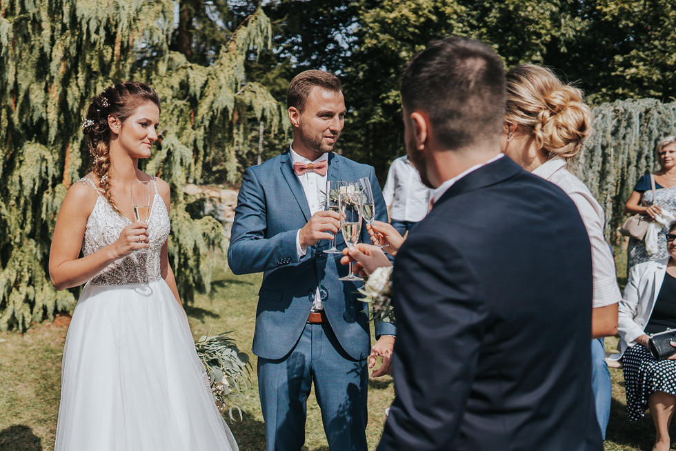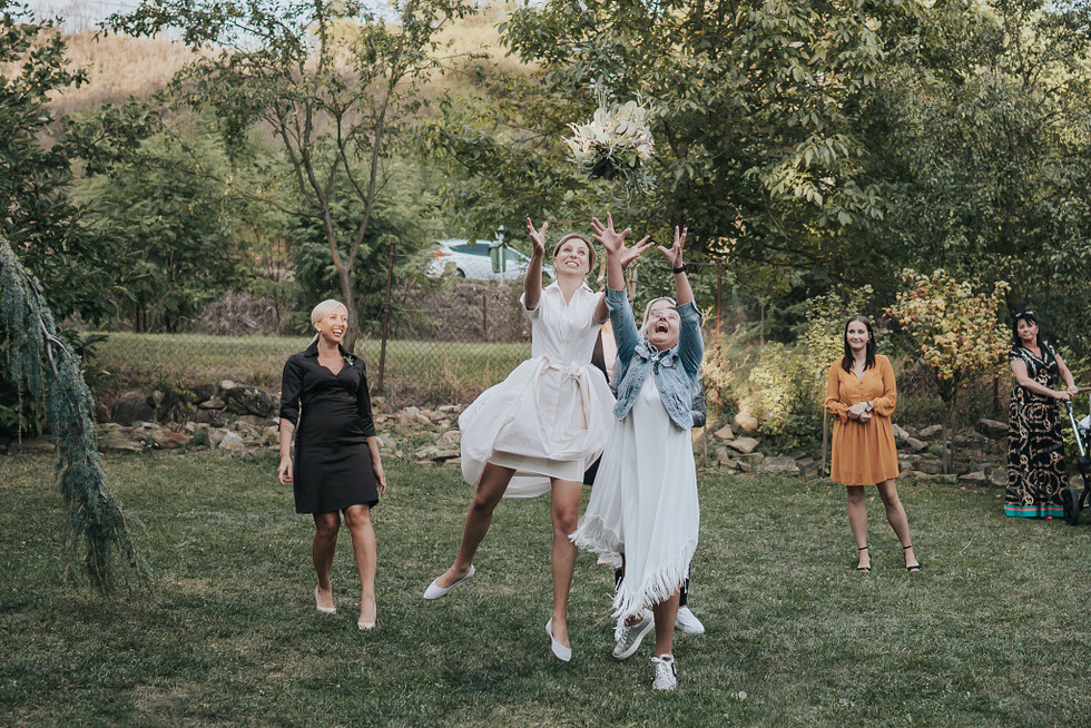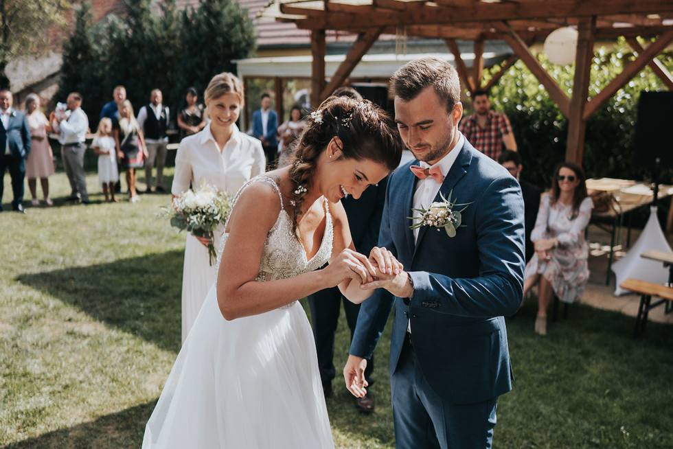 Trubínská stodola je kousek od Prahy, ale nelze o ní téměř nikde najít žádné info, takže mě existence takhle pěkného místa s velkou uzavřenou zahradou mile překvapila. Na zahradě proběhl pod slavobránou krásný obřad a pak už následovala svatební klasika: oběd, dort, házení kytice a focení. Počasí vyšlo novomanželům nádherně, z toho jsem měla fakt radost. A také moc oceňuji, že se mnou vyjeli na focení na trochu vzdálenější místo, protože to stálo za to! Našla jsem krásné místo s výhledem, kde současně byla vysoká přírodní tráva a borovice - no sen! Mám obrovské štěstí na samé sympatické a milé lidi, tahle rodinka s roztomilými dětmi mě zase chytla za srdce. Děkuji ♥