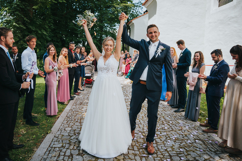 Obřad byl moc hezký, citlivě podaný a minimalistický interiér gotického kostela mu dodal na důležitosti. Po obřadu jsme se přesunuli do velkorysých prostor zámečku Hvězda, kde proběhl zbytek svatebního dne. Počasí nám vyšlo na jedničku, novomanželé Anička s Martinem byli moc fajn a mám radost z toho, že se povedlo je na focení vytáhnout dokonce 2x - nejprve s veteránem Tatry k nedalekému rybníku a poté i později na golfové hřiště, které přímo přiléhá k prostorům zámečku. Bylo výborné, že po obědě probíhal celý svatební den venku, tančilo se na dřevěné terase, hosté se bavili a celkově byla atmosféra skvělá.